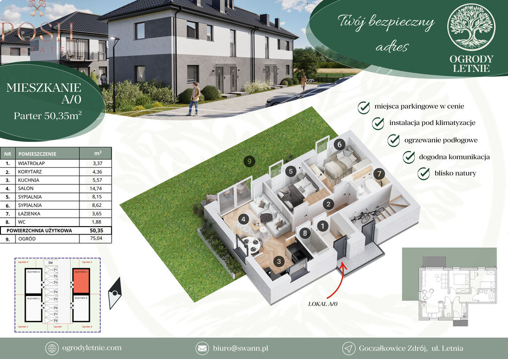 · Informacje dodatkowe: miejsce postojowe w cenie, prywatny ogródek
